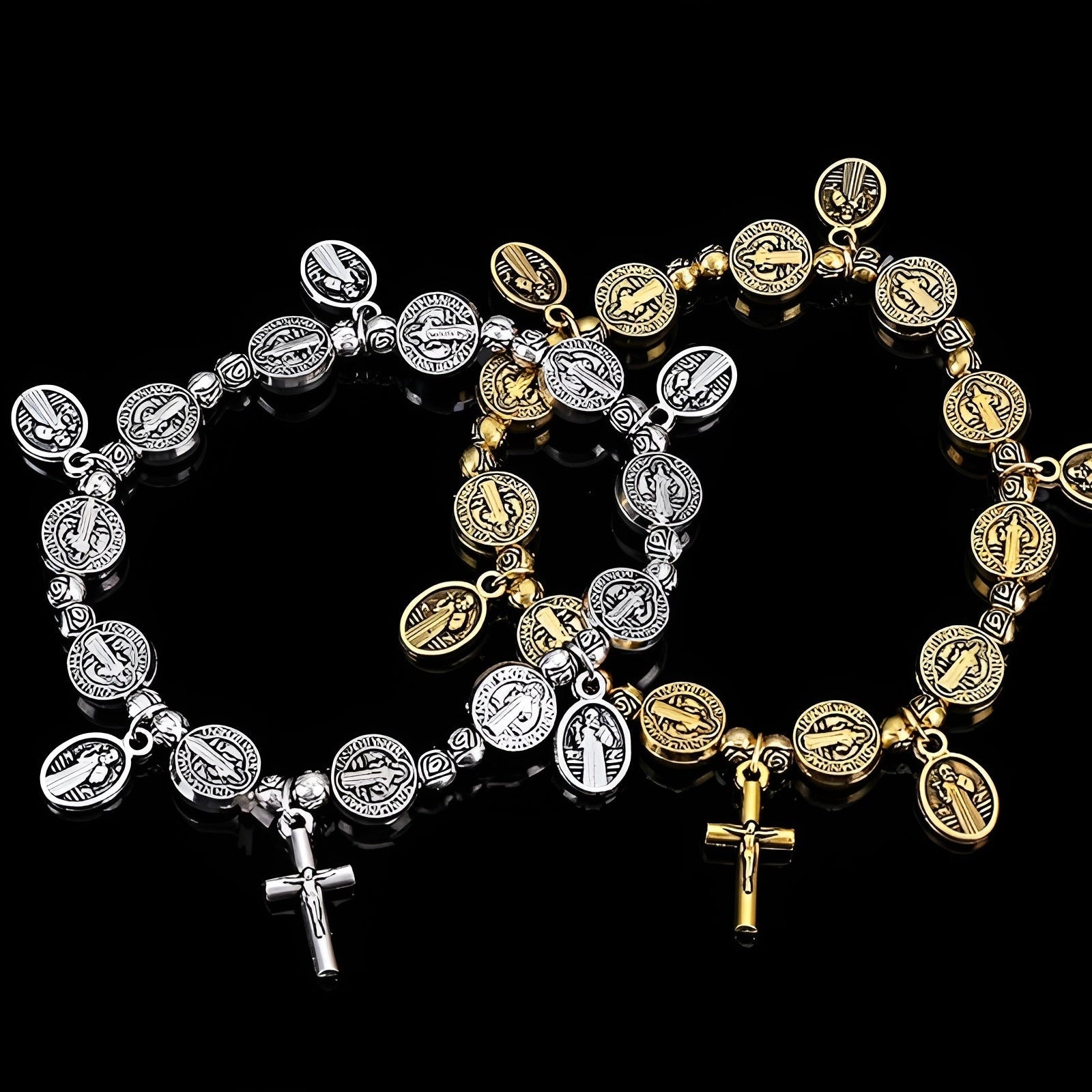 - Design : Orné de médailles symboliques et d'une croix suspendue, ajoutant une dimension spirituelle à un bijou élégant.